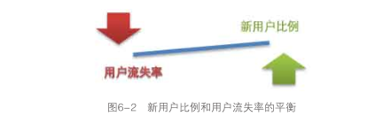 新用戶比例反映著網(wǎng)站或產(chǎn)品的推廣能力,渠道的鋪設以及帶來的效果,新用戶比例不僅是評估市場部門績效的一個關鍵指標,同時也是反映網(wǎng)站和產(chǎn)品發(fā)展狀況的重要指標。然而,只看新用戶比例是不夠的,需要結(jié)合著用戶流失率一起看,我見過流失率98%的網(wǎng)站,也見過流失率20%左右的產(chǎn)品,流失率會根據(jù)產(chǎn)品對用戶黏性的不同而顯得參差不齊。用戶流失率反映了網(wǎng)站或者產(chǎn)品保留用戶的能力,即新用戶比例反映的是用戶“進來 ”的情況,用戶流失率反映的是用戶“離開"的情況,結(jié)合這兩個指標會有下面三類情況,代表了三種不同的產(chǎn)品發(fā)展階段,如圖6-2所示。