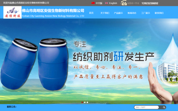 佛山市安信生物新材料有限公司,位于中國廣東佛山。 本公司經(jīng)過多年的積累、發(fā)展以及在化工領(lǐng)域的不斷探索,現(xiàn)已成為一家源于生物酶整理,代用堿、滲透劑、各種風格手感硅油等產(chǎn)品,集研發(fā)、生產(chǎn)、 銷售、服務(wù)于一體的綜合性紡織助劑企業(yè) 。 提供節(jié)能、低耗,符合生物環(huán)保要求的紡織印染助劑、服裝水洗生物酶制劑等系列產(chǎn)品,以滿足環(huán)保要求日趨嚴格的市場。 多年來,安信科技以“以人為本,客戶至上,質(zhì)量第一,信譽至上”的原則,為客戶創(chuàng)造最大價值的營銷理念;在反思中尋找差距、在對比中趕超先進的學習理念;貼近市場,心系用戶,換位思考,真誠服務(wù)的服務(wù)理念;為海內(nèi)外客戶提供良好的產(chǎn)品和服務(wù)