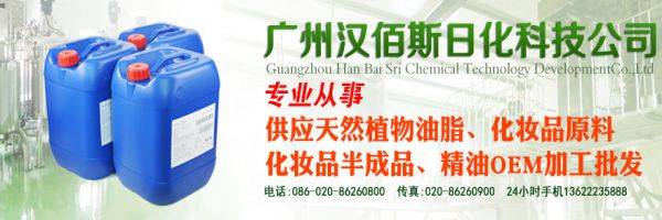 廣州漢佰斯日化科技發(fā)展有限公司是有多年從事天然精油批發(fā)、精油OEM加工、化妝品原料批發(fā)及進出口的公司,主營業(yè)務(wù)為各類天然香料精油、化妝品原料、OEM加工和化妝品配件,集研發(fā)、生產(chǎn)和進出口銷售一體化經(jīng)營。 公司有10多年經(jīng)營天然香料精油、精油OEM加工、化妝品原料及研發(fā)的經(jīng)驗,與世界各地的經(jīng)銷商、供應(yīng)商建立了長期良好的合作關(guān)系。公司依托香港、深圳、廣州的高效、快捷的物流服務(wù)體系,為世界各地的客戶提供高質(zhì),多樣的銷售服務(wù)。 廣州漢佰斯日化科技發(fā)展有限公司憑借多年以來豐富的市場經(jīng)驗與雄厚的實力,通過公司人員的不懈努力和創(chuàng)新,如今客戶遍及歐美及東南亞各國,成為國內(nèi)及香港主要的天然精油、精油OEM加工、化妝品原料進出口公司。 公司主營產(chǎn)品天然葡萄籽油、橄欖油、甜杏仁油、玫瑰果油、小麥胚芽油、荷荷巴油及其他各種天然精油,基礎(chǔ)油可年產(chǎn)銷12000噸,已成為國內(nèi)天然精油、化妝品、香料及原料的進出口企業(yè)之一,也是香港主要的天然香料精油基礎(chǔ)油進出口公司。
