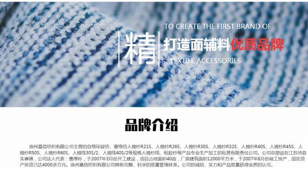 徐州嘉*紡織有限公司選用我司企業(yè)紗線行業(yè)的網(wǎng)站優(yōu)化產(chǎn)品,其SEO關(guān)鍵詞有 沛縣人棉紗,沛縣粘膠紗,沛縣環(huán)錠紡,沛縣賽絡(luò)紡。其特點(diǎn)是用很合適的展示方式、展示效果、站點(diǎn)框架,把客戶及其用戶很關(guān)心的問題突出表現(xiàn);并以簡潔明朗的設(shè)計(jì)風(fēng)格,清晰展現(xiàn)公司水平實(shí)力,確保一秒抓住目標(biāo)用戶眼球,給用戶留下良好的第一印象。徐州嘉*紡織有限公司成立于2008年,是經(jīng)沛縣市市場監(jiān)督管理局審核的有資質(zhì)的公司,其統(tǒng)一社會(huì)信用代碼:91320322673**9818F。公司地址:江蘇省徐州市沛縣朱寨鎮(zhèn)工業(yè)園。