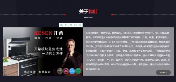 KESEN開(kāi)希一德系生活。歐洲品位。KESEN開(kāi)希品牌創(chuàng)于1986年,專注國(guó)際品牌廚電,20O1年進(jìn)入中國(guó)市場(chǎng)主要從事廚電產(chǎn)品的研制,幵發(fā),制造,銷(xiāo)售和服務(wù)。經(jīng)過(guò)多年的創(chuàng)新發(fā)展,為了擴(kuò)大企業(yè)規(guī)模,開(kāi)希電器逐漸涉足機(jī)械制造,集成灶等其它行業(yè),為此在2004年在寧波成立集成灶公司,全面投入研究開(kāi)發(fā)適合中國(guó)貴族家庭的集成灶,實(shí)現(xiàn)行業(yè)獨(dú)有,環(huán)保,健康,高雅和個(gè)性的特色廚房,開(kāi)希集成灶繼承了開(kāi)希電器產(chǎn)品技術(shù)含量高,質(zhì)量穩(wěn)定可靠的產(chǎn)品優(yōu)勢(shì),并在此基礎(chǔ)上引進(jìn)國(guó)外先進(jìn)工藝技術(shù),集合研,產(chǎn),銷(xiāo),服務(wù)為一體的科學(xué)管理體系。彰顯產(chǎn)品完美,商雅,時(shí)尚和高品質(zhì)的特有意蘊(yùn),使公司產(chǎn)品暢銷(xiāo)國(guó)外市場(chǎng),挙頭品牌,開(kāi)希在中國(guó)市場(chǎng)擁有較商的知名度