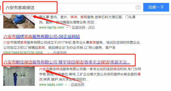 我們公司與六安市鵬佳保潔服務(wù)有限公司合作中,對(duì)這個(gè)公司所經(jīng)營(yíng)的家政保潔這個(gè)行業(yè)提供了快速排名,與該公司的合作,更多的客戶讓我們公司為其提供快速排名,通過每一次合作,我們公司不斷完善自己,同時(shí)希望合作伙伴在經(jīng)營(yíng)的路上越來越好。