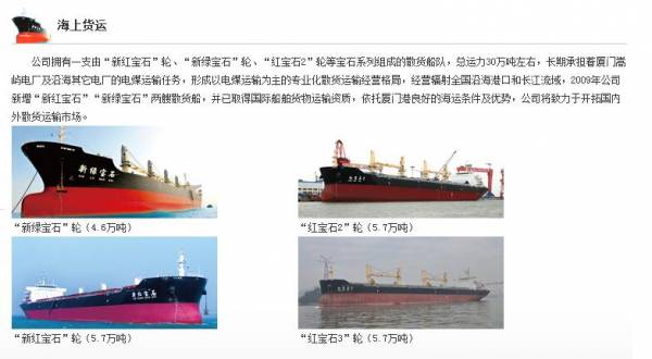 公司擁有一支寶石系列萬噸級(jí)散貨船隊(duì),航線遍及國內(nèi)沿海、長江主要港口及部分國際港口,長期承擔(dān)國內(nèi)部分電廠的電煤運(yùn)輸,是國內(nèi)電煤運(yùn)輸?shù)闹匾?duì)之一;積極從事對(duì)臺(tái)客貨運(yùn)輸,在兩岸海上通航中開創(chuàng)了多項(xiàng)“第一”。1997年4月19日,公司集裝箱船“盛達(dá)”輪從廈門成功首航臺(tái)灣高雄,成為48年來直航臺(tái)灣海峽兩岸間的第一船。2001年2月6日,公司“鼓浪嶼”號(hào)客輪直航金門,成為半個(gè)世紀(jì)來祖國大陸首航金門第一船。2002年2月27日,公司“中洲”輪承載1900噸砂石建材從廈門直航金門,開創(chuàng)了53年來“廈金兩門”貨運(yùn)直航的先河。公司為100多艘臺(tái)輪派遣船員,占大陸派出總數(shù)的三分之一強(qiáng),在臺(tái)灣市場擁有很高的美譽(yù)和品牌影響力。