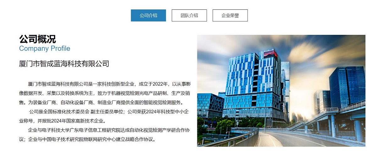 廈門(mén)市智成藍(lán)??萍加邢薰臼且患铱萍紕?chuàng)新型企業(yè),成立于2022年,以從事影像數(shù)據(jù)網(wǎng)站開(kāi)發(fā)、采集以及轉(zhuǎn)換系統(tǒng)為主,致力于機(jī)器視覺(jué)檢測(cè)光電產(chǎn)品研制、生產(chǎn)及銷(xiāo)售。為裝備業(yè)廠商、自動(dòng)化設(shè)備廠商、制造業(yè)廠商提供全面的智能視覺(jué)檢測(cè)服務(wù)。