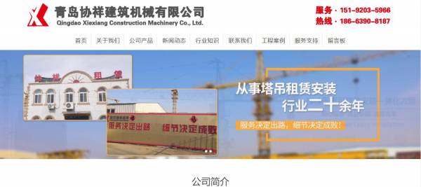 青島協(xié)祥建筑機械有限公司選用我司企業(yè)建筑設備行業(yè)的網(wǎng)站優(yōu)化產(chǎn)品,其SEO關鍵詞有 青島建筑機具租賃,青島建筑機械租賃,青島建筑設備租賃,青島塔機設備租賃,青島塔機機械租賃,青島塔機租賃,青島塔吊塔機租賃,青島塔吊租賃,山東塔吊租賃,山東塔機租賃。其特點是用很合適的展示方式、展示效果、站點框架,把客戶及其用戶很關心的問題突出表現(xiàn);并以簡潔明朗的設計風格,清晰展現(xiàn)公司水平實力,確保一秒抓住目標用戶眼球,給用戶留下良好的第一印象。青島協(xié)祥建筑機械有限公司成立于2009年,是經(jīng)青島市市場監(jiān)督管理局審核的有資質(zhì)的公司,其統(tǒng)一社會信用代碼:91370214686790544N 。公司地址:山東省青島市城陽區(qū)鐵騎山路玉皇嶺工業(yè)園。