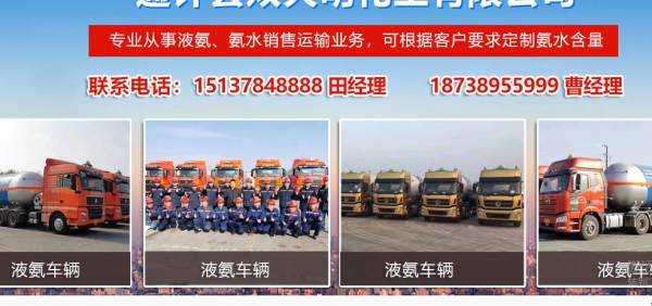 公司現(xiàn)有管理人員28名,司機及押運員136名,自有液氨、氨水車輛68臺,年銷售30萬噸液氨、氨水15萬噸;長期合作客戶遍布全國各地。