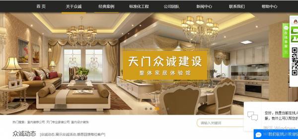 天門眾*建設(shè)工程有限公司選用我司企業(yè)建筑建材行業(yè)的網(wǎng)站優(yōu)化產(chǎn)品,其SEO關(guān)鍵詞有 室內(nèi)裝修公司,天門專業(yè)家裝公司,室內(nèi)設(shè)計(jì)裝飾,天門眾*建設(shè)工程有限公司。其特點(diǎn)是用很合適的展示方式、展示效果、站點(diǎn)框架,把客戶及其用戶很關(guān)心的問(wèn)題突出表現(xiàn);并以簡(jiǎn)潔明朗的設(shè)計(jì)風(fēng)格,清晰展現(xiàn)公司水平實(shí)力,確保一秒抓住目標(biāo)用戶眼球,給用戶留下良好的第一印象。天門眾*建設(shè)工程有限公司成立于2009年,是經(jīng)天門市市場(chǎng)監(jiān)督管理局審核的有資質(zhì)的公司,其統(tǒng)一社會(huì)信用代碼:91429006698***2897。公司地址:湖北省天門市竟陵鐘惺大道8號(hào)(仁信國(guó)際廣場(chǎng)3號(hào)樓4樓)。