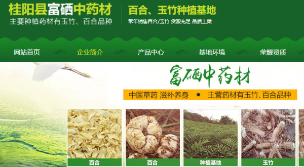 桂陽縣富硒中藥材有限公司位于歷史文化悠久、風景宜人、 氣候溫潤的湖南省桂陽縣。公司種植面積達到1000余畝,主要種植藥材有玉竹、百合品種。其中玉竹種植面積達800余畝,三年一產一收,計能產鮮貨約700萬斤,通過天然日曬干貨約有200萬斤。百合種植面積200余畝,一年一產一收,計約產鮮貨 100萬斤,通過天然日曬約為30萬斤。 2013年11月被桂陽人民政府評為桂陽縣農業(yè)產業(yè)化龍頭企業(yè)。桂陽縣富硒中藥材有限公司以合作社及家庭模式共存,始終秉承“誠信,雙贏,綠色,生態(tài)”的發(fā)展理念。堅持以科 技為依托,以市場為導向,產學研相結合,按照生態(tài)化、資源化、無害化的原則進行生態(tài)藥材種植和林下生態(tài)養(yǎng)殖,以追求“綠色原生態(tài)”中藥材 為目標,建成綠色生態(tài)種植和休閑觀光一體,覆蓋研發(fā),種植,加工, 銷售全產業(yè)鏈的藥材 公司在經營上貫徹“人本、誠信、為民”的服務宗旨,奉行“規(guī)范管理、質量為上、信譽至上、共創(chuàng)雙贏”的企業(yè)理念。