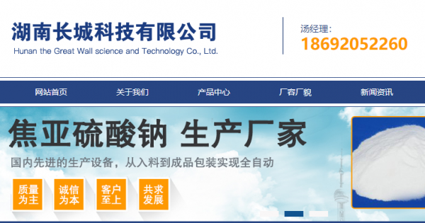 湖南長城科技有限公司是一家集科研開發(fā)、生產(chǎn)經(jīng)營、技術(shù)服務(wù)為一體的高科技企業(yè),始建于2004年,占地面積120畝,總投資人民幣1.12億元,是焦亞硫酸鈉、亞硫酸鈉等產(chǎn)品的專業(yè)生產(chǎn)廠家。公司擁有先進(jìn)的生產(chǎn)設(shè)備,從入料生產(chǎn)到成品包裝實(shí)現(xiàn)全自動、全封閉的自動化生產(chǎn)線。美國辛辛那提大學(xué)、加拿大多倫多大學(xué)多所院校知名教授參與的研發(fā)團(tuán)隊(duì),技術(shù)力量雄厚,完善的檢測設(shè)備,年總產(chǎn)焦亞硫酸鈉、亞硫酸鈉30000噸以上。擁有成熟的銷售網(wǎng)絡(luò)和售后服務(wù)體系,產(chǎn)品遠(yuǎn)銷全國各地。廣泛應(yīng)用于醫(yī)藥、食品、熱寶、電子、陶瓷、涂料、橡膠、印染、電鍍、皮革、水泥助磨劑等領(lǐng)域。公司位于湖南省衡陽市祁東歸陽工業(yè)集聚區(qū),歸陽高速路口1公里處,地理?xiàng)l件優(yōu)越,交通條件得天獨(dú)厚,衡昆高速、益婁衡高速、S317線穿境而過,湘桂鐵路、祁東火車站近在咫尺;產(chǎn)品銷往全國30多個(gè)城市和地區(qū),在同行業(yè)中享有較高聲譽(yù)。
